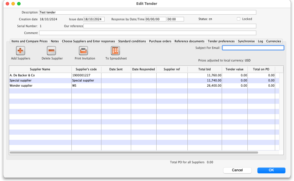 - 18.03. Adding suppliers to a tender and inviting responses