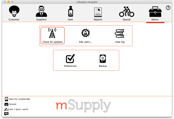 • mSupply single user can be updated automatically by the user - see mSupply single user below.