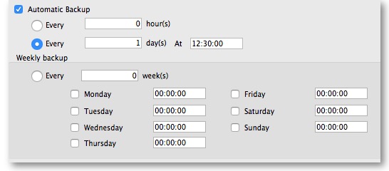 Select Automatic Backup and schedule by hour(s), day(s) or week(s) as indicated.