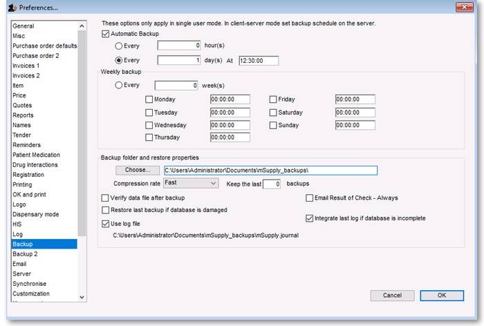 If you are using a synchronisation system with mSupply it's very important that you don't lose any data on the remote site. To ensure that power failures (or a dead battery on a laptop) don't cause mSupply to quit unexpectedly and therefore to lose data, you should configure mSupply to use a log file.