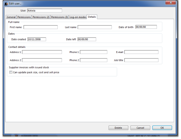 Other than that, these fields are for reference only, providing a handy place to record information about your system users.