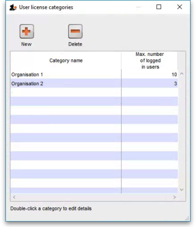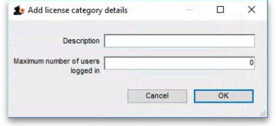 Now double-click on the license category you want to edit in the list and, in the window that opens, edit the category's description or maximum number of logged in users and click on the OK button to save your changes. You will be returned to the list of user license categories which will show the changes you just made.