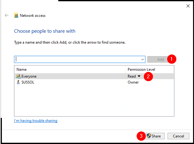- Ensure that the Permission Level is Read