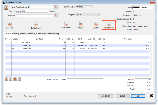 But, once you have finished picking the items and have confirmed the customer invoice, the picking process is counted as complete and the Picklist check button is removed.