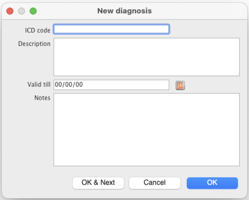 Click on the New diagnosis button on the top-left of the window to add a new diagnosis.