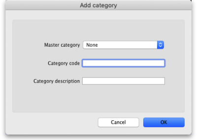 Click on the New button to add one or double-click one already in the list to edit it. This window opens (populated with the current details of the category if you're editing one, empty if you're creating a new one):