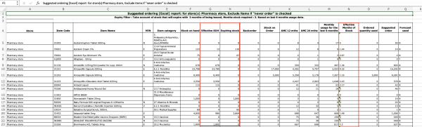 The `Effective Month of Stock` is now calculated from the `Effective SOH` and not from the `Stock on Hand`. The `Suggested order` is now calculated from the `Effective SOH` and the `Effective Month of Stock`.