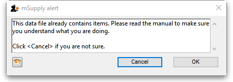 mSupply does a quick scan of the import file, and may come up with the following alert: