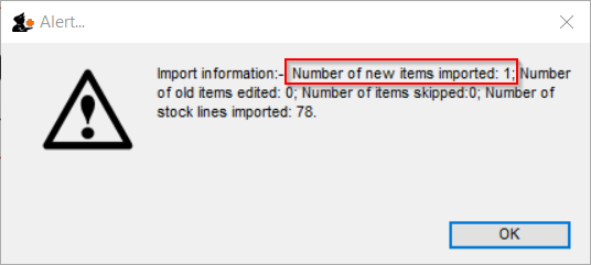 - Number of new items imported: This should only be >0 if you selected the Update item details and add stock radio button