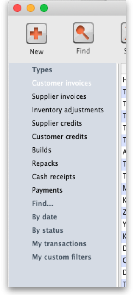 To view or edit any customer invoice, choose Customer > Show invoices from the menus or click on the Show me a list icon in the Customer invoices section on the Customer tab of the Navigator: