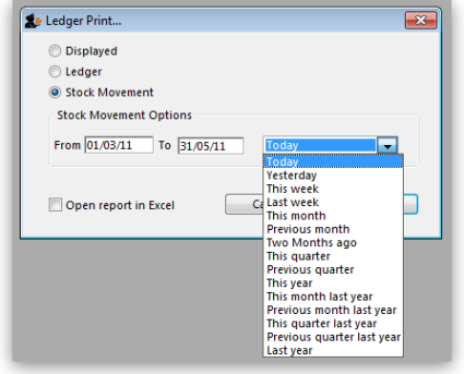 • stock movement for a specific period or between two dates of your choice