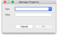 • The same window as when adding a property will open but populated with the property's name and value. Type the new name of the property or click on the arrows to the right of the Type field to select one from the list of current properties.