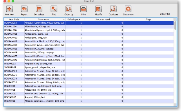 Managing items is mostly done from the Item menu or Item tab on the Navigator. The item menu also contains commands for managing lists related to items such as accounts, drug interactions and units.