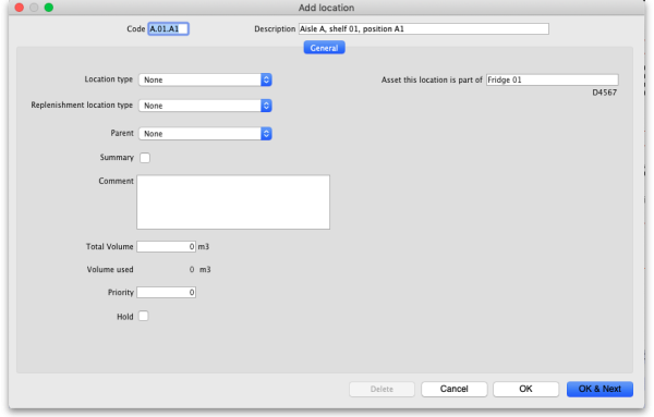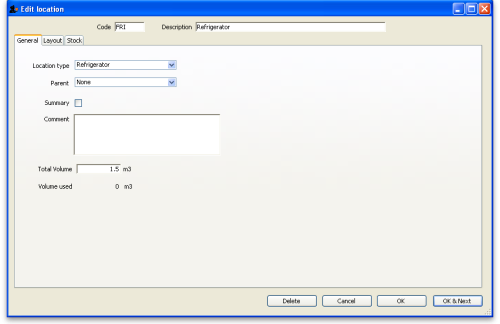Knowing the volume of a location is important if, for example, you are replenishing your stock of vaccines, and you need to know if there is enough space available in the refrigerator in which you store vaccines to accommodate a new order (obviously, you would also need to know the volume of the vaccines that you are ordering).