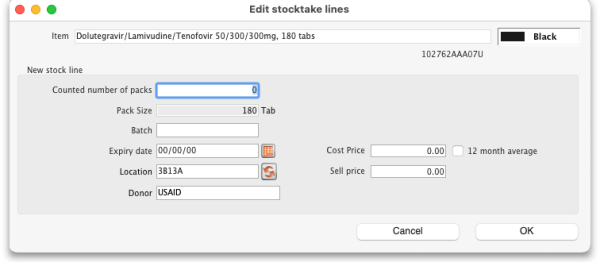 To enter something in one of the columns, simply click into it and type what you want to enter. If you need to enter more than the batch, expiry date, number of packs or comment then double-click on the line to make more fields available for entry: