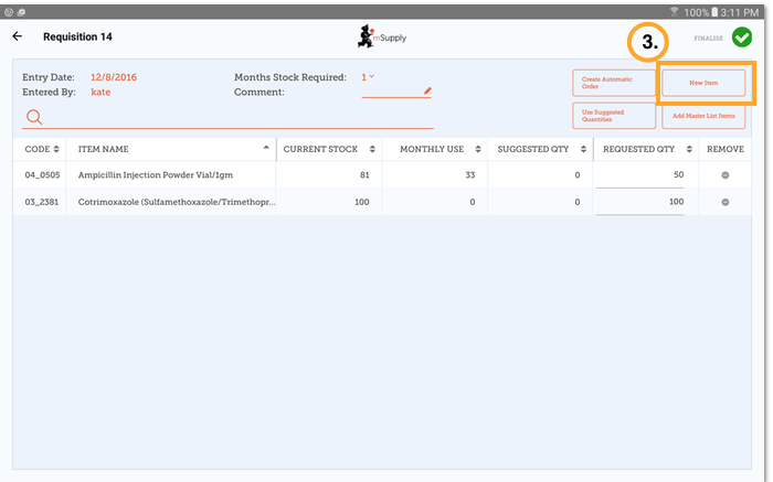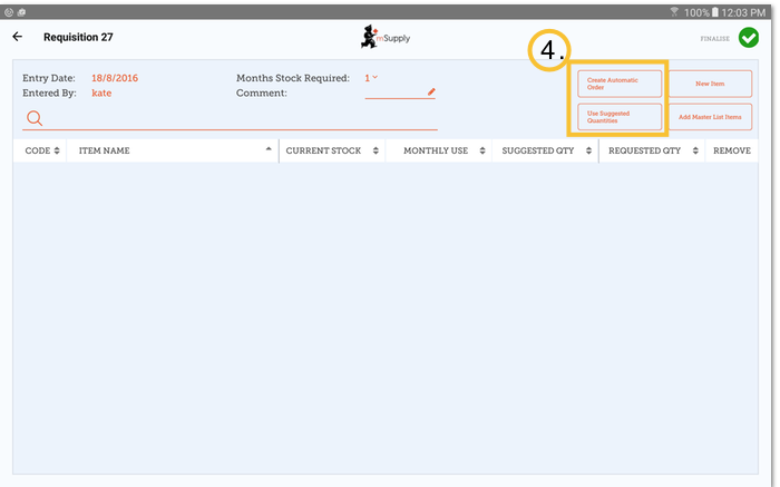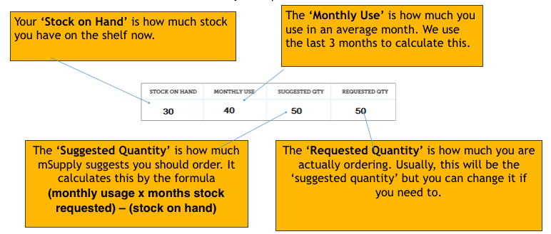 When you are creating a new requisition, mSupply Mobile now has a tool to help you work out how much stock you need to order! In the past, you had to use a calculation formula to work out how many of each item, and you needed to do this for EVERY item in your order.