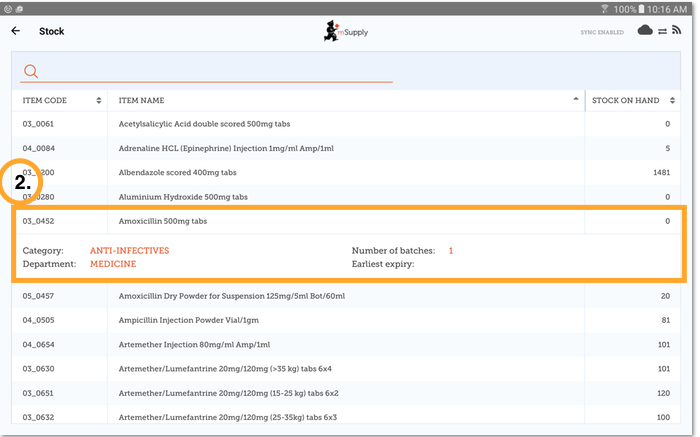 One of the most important - but easiest - tasks in mSupply Mobile is to check how much stock you have on hand. When you create a Customer Invoice and add an item, mSupply Mobile will tell you if you have enough stock. But at many other times, you might want to quickly check, and it is very simple to do so.