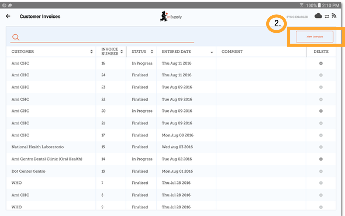 2. To start a new Customer Invoice, click 'New Invoice'.