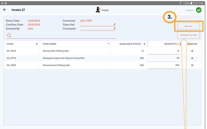 Like always with mSupply Mobile, you don't need internet to do this - the information will sync in the background when internet becomes available.
