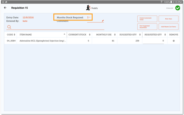 Now, simply select the 'Months Stock Required' and mSupply Mobile will calculate your order quantities automatically. You can even check the amounts and change them if you require.