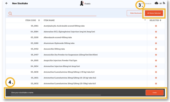 4. Give your stocktake a logical name, such as “April Full Stocktake'., and click CREATE.