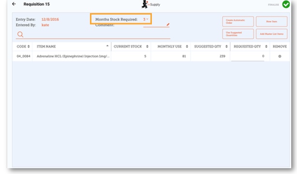 Now, simply select the 'Months Stock Required' and mSupply Mobile will calculate your order quantities automatically. You can even check the amounts and change them if you require.