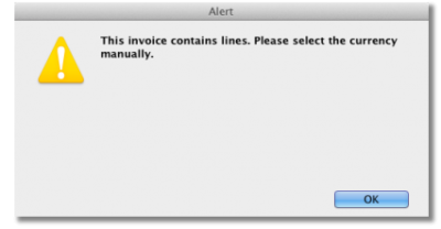 • If you change the supplier on an invoice that has item lines, the following message will appear. Check the currency is correct for the new customer and adjust it if necessary.