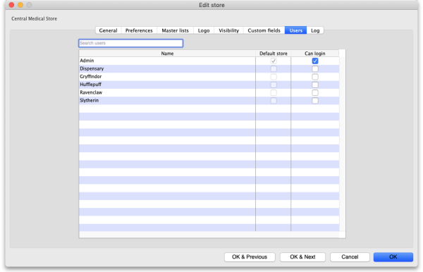 The users tab shows which users have permission to log into this store.