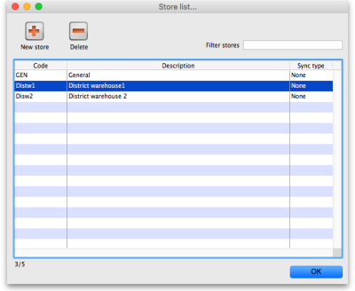 From the Special drop down menu click Show stores… The Stores list window (shown below) appears and displays a list of all the stores which currently exist including their sync type: