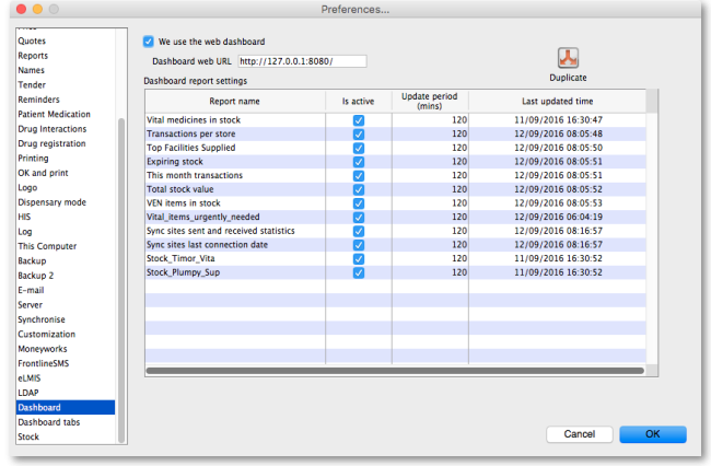 August 2020: The instructions on this page are for configuring mSupply's legacy web dashboard and mSupply Mobile dashboards. mSupply's legacy web dashboard has been superseded by the mSupply Grafana web dashboard.