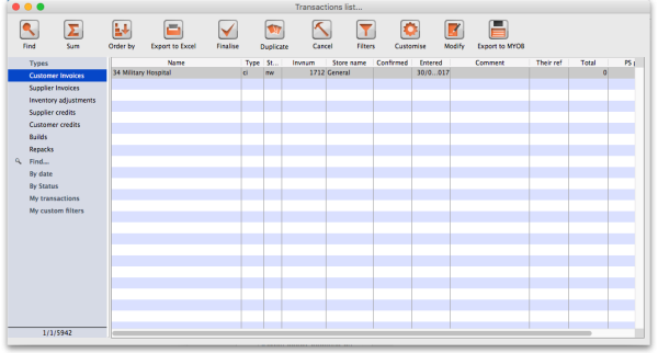 Clicking on the OK button will take the user to a list of their nw status invoices and they can double-click on any of them to edit as usual:
