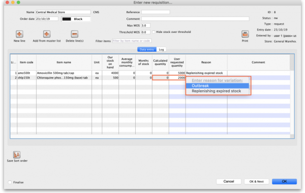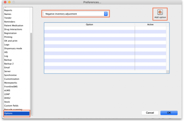 You can create a list of options (or reasons) for the user to select from when they perform certain actions in mSupply (in drop down lists etc.). Options are an alternative to the user typing free text, and can help standardise information being recorded in mSupply, which facilitates reporting.