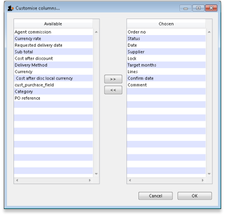 Enter dates in these fields as appropriate. They are all optional unless any of them are made compulsory by turning on the appropriate preferences on the Purchase orders 2 tab of the File > Preferences… menu item. See Purchase order preferences for more details.