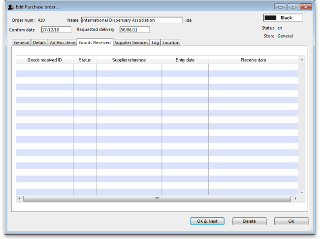 Fill in the actual delivery date. Leave the date blank for Purchase Orders that have not been delivered