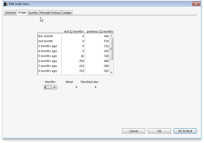 When the Auto calc usage check box is checked, each time you modify an item line, the usage for that line will be calculated. This is slower, but gives useful information upon which to base your ordering . Note that this option can also be turned on within the order line modifying window.