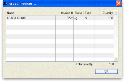In the screenshot above you will notice the “units issued: 10” text in blue to the right of the Quantity field. This will only be present if stock has already be issued to customers. You can click on that text to display a list of issued invoices as described above with the View issued invoices button.