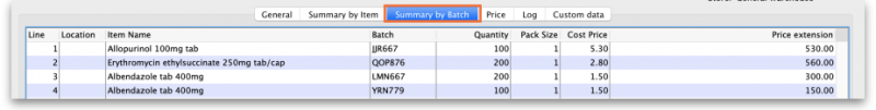 Each line received on a supplier invoice will be treated as a separate line in your stock. You can manually consolidate these later, or set a preference to automatically consolidate items with the same batch, expiry date, pack size, location, donor, cost and sell price.