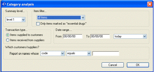 You can report on all items, or you can report on just a certain category. For example, you can enter “J” here to report only on items whose ATC code starts with “J”. Note that you need to set the summary level to “level 2” or your report will only report the total for category “J” without any further breakdown of data.