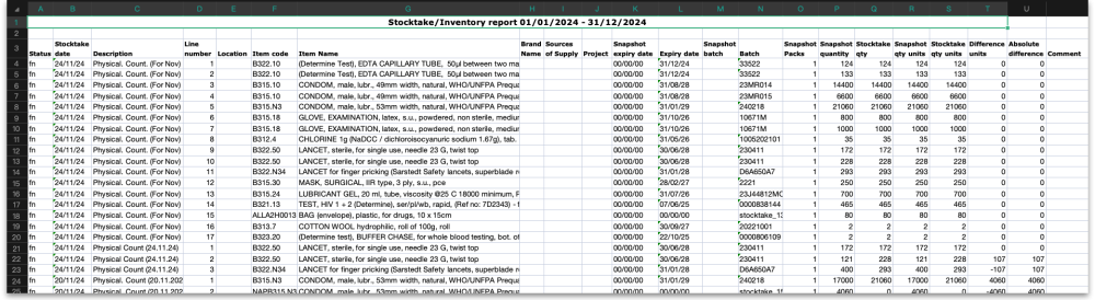 - Include stocktakes with Finalised (fn) status: If this is checked then lines from stocktakes with finalised status will be included in the report.