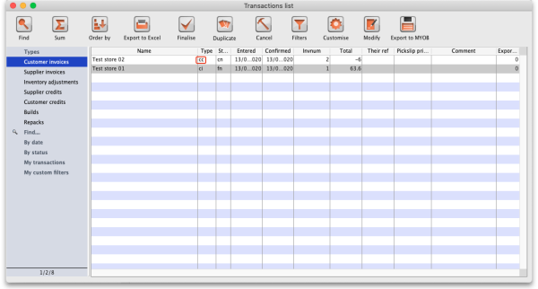 When you're done, click on the OK button. You are asked for confirmation and then a finalised customer credit (with the transaction category you selected in the Reason for return drop down list) is created for you, which you can view as described in Viewing and editing customer credits.