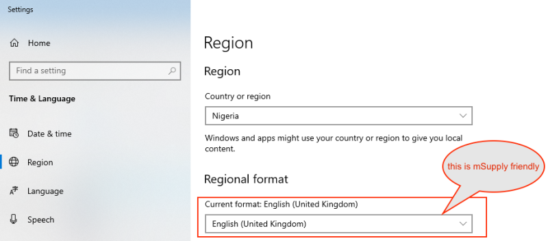 For example with regional format setting of English (Nigeria) it is known that mSupply will not start.