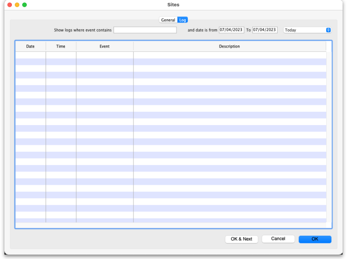 The various fields are all described below in the Creating New Sync Sites section. Click on the Log tab to see a list of the logs that have been recorded for that site: