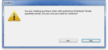 2. Distribute Tender quantity evenly should be chosen if you wish to make no changes to the quantities calculated at the time the tender was generated.